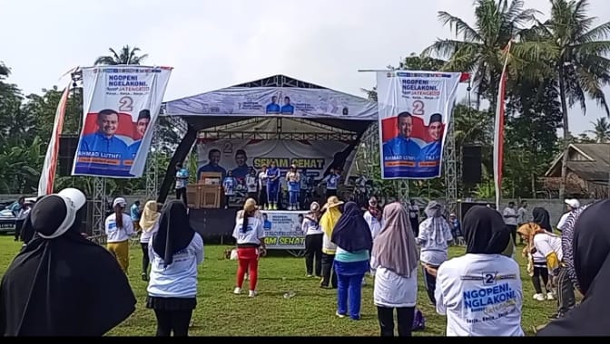 Dapil 3 Cilacap meliputi Kecamatan Sidareja, Kecamatan Cipari, Kecamatan Kedungreja, dan Kecamatan Patimuan, ini menggelar senam sehat ngopeni sehat nglakoni senam berlangsung di lapangan Desa Tambakreja Kecamatan Kedungreja Kabupaten Cilacap, Minggu (3/11/2024).