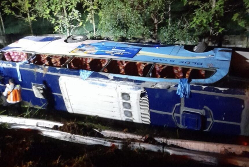 Rombongan bus mengangkut sekitar 61 peziarah mengalami kecelakaan di Kilometer 179 Tol Cirebon-Palimanan (Cipali), Minggu, 3 Maret 2024.