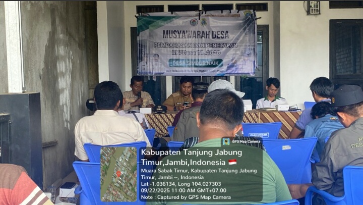 Tanjung Jabung Timur,CMInews.co.id- Pemerintah Desa Simbur Naik, Kecamatan Muara Sabak Timur, Kabupaten Tanjung Jabung Timur, propinsi Jambi ,menggelar Musyawarah Perencanaan Pembangunan (Musrenbang) Desa untuk rencana pembangunan Tahun 2026 bertempat di Kantor Desa Simbur Naik pada hari Senin (22 September 2025 ).