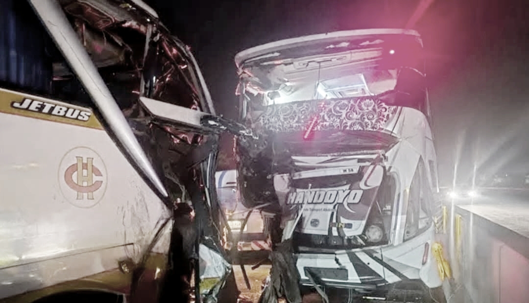 “Ada satu bus yang tidak diketahui identitasnya memotong dari lajur kiri ke kanan, sehingga Bus Kramat Djati terpaksa mengerem mendadak,” jelas AKP Eka Hendra, Minggu (16/11/2025).