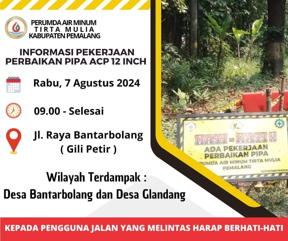 Informasi Penting! Perbaikan Pipa ACP 12 INC di Gili Petir Bantarbolang Mengakibatkan Gangguan Aliran Air Sementara