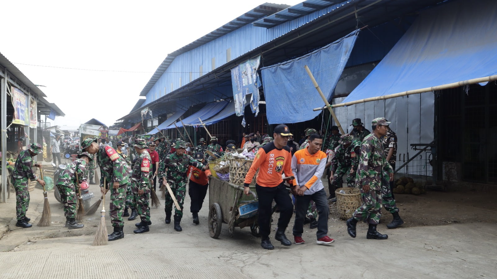 Pemalang – Pembersihan Pasar Buah dan Sayur Kegiatan Karya Bakti pembersihan pasar buah dan sayur di wilayah Kodim 0711/Pemalang dilakukan dengan tujuan untuk menjaga kebersihan pasar dan mencegah terjadinya bencana banjir serta penyebaran penyakit.