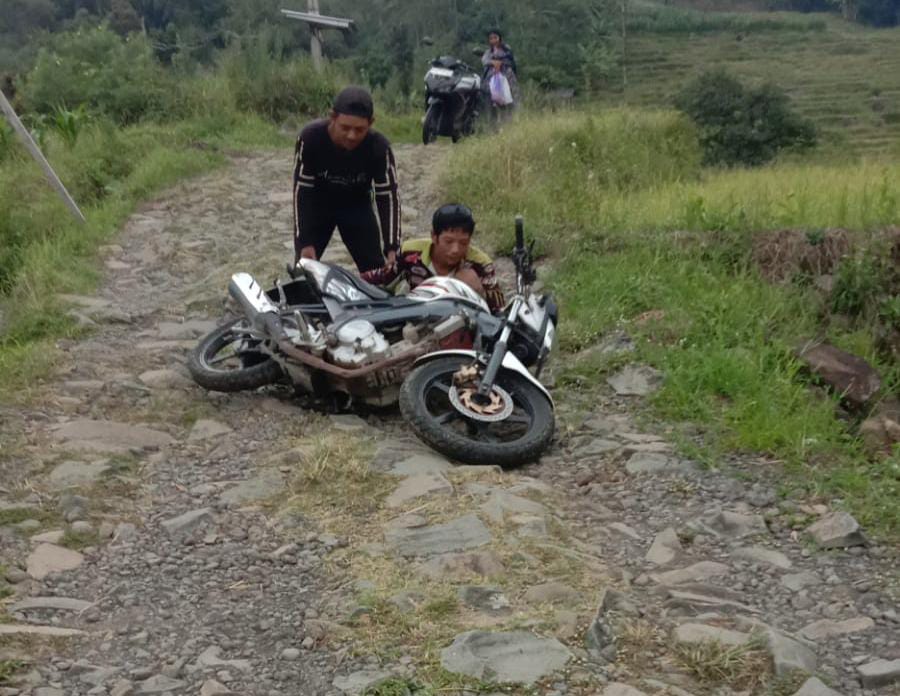 Pemalang – Potret memprihatinkan kembali terlihat di Dukuh Planjan, Desa Mendelem, Kecamatan Belik, Kabupaten Pemalang. Seorang warga terjatuh bersama sepeda motornya saat melintas di jalan rusak berbatu, Jumat (17/10/2025) pagi. Insiden ini bukan yang pertama, namun menjadi penegasan getir bahwa janji pembangunan sejak tahun 2012 hanyalah isapan jempol yang membahayakan nyawa.