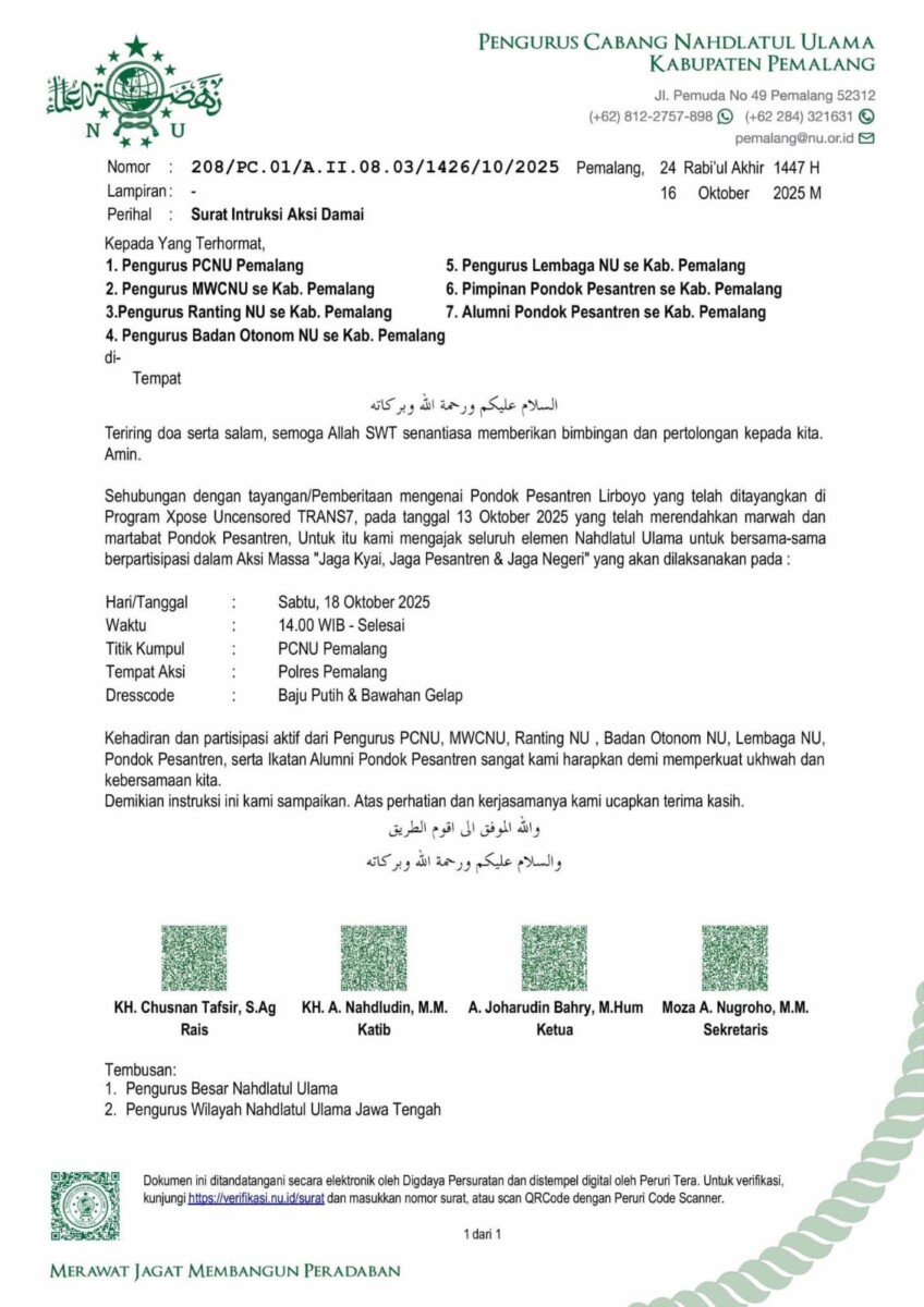Ketua Umum PBNU, Gus Yahya Cholil Staquf, sebelumnya telah menyampaikan protes keras, menilai tayangan tersebut melecehkan pesantren dan berpotensi mengganggu harmoni sosial.
