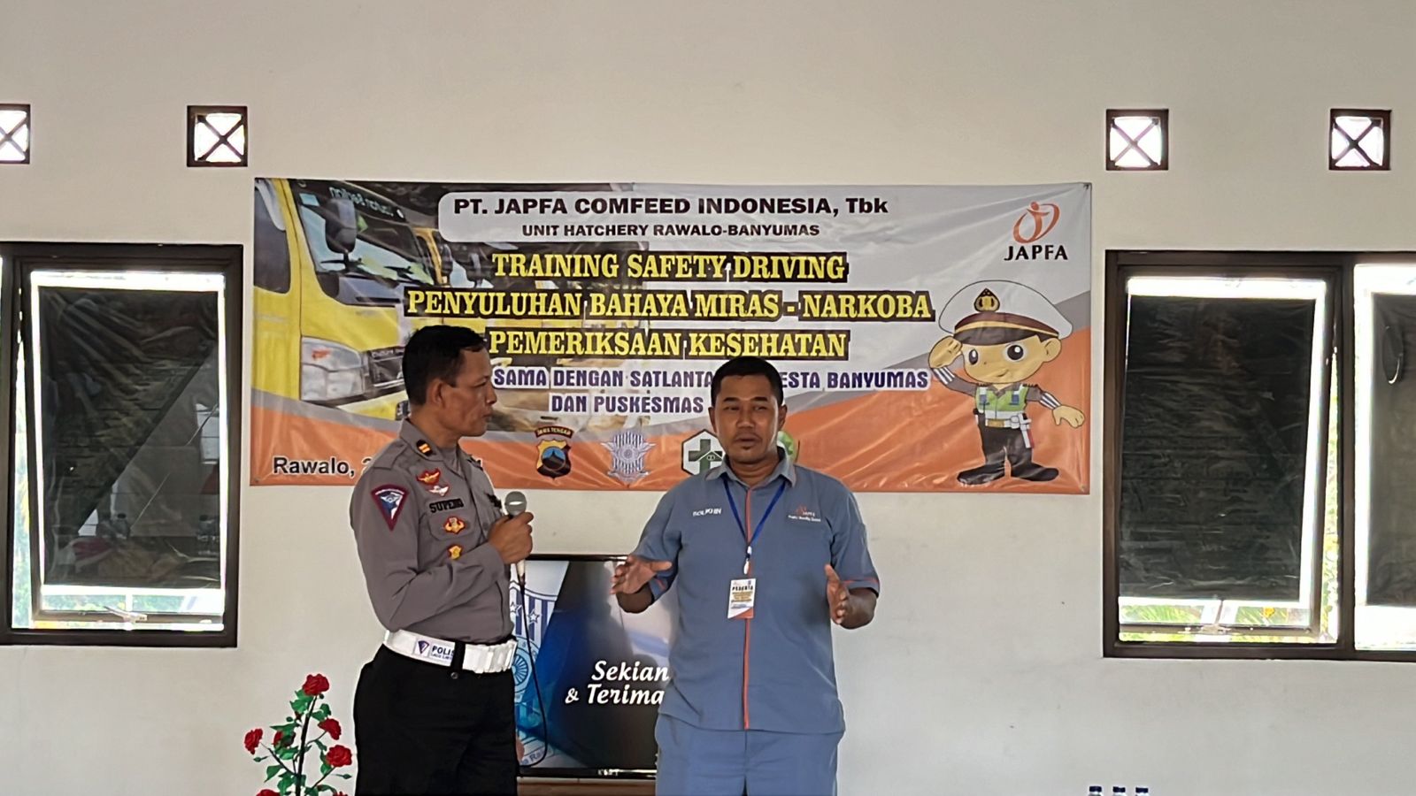 Training Safety Driving kali ini diberikan untuk para driver PT. Japfa Comfeed Indonesia, bertempat di aula PT. Japfa Comfeed Indonesia di Rawalo Banyumas, Senin (27/5/2024).