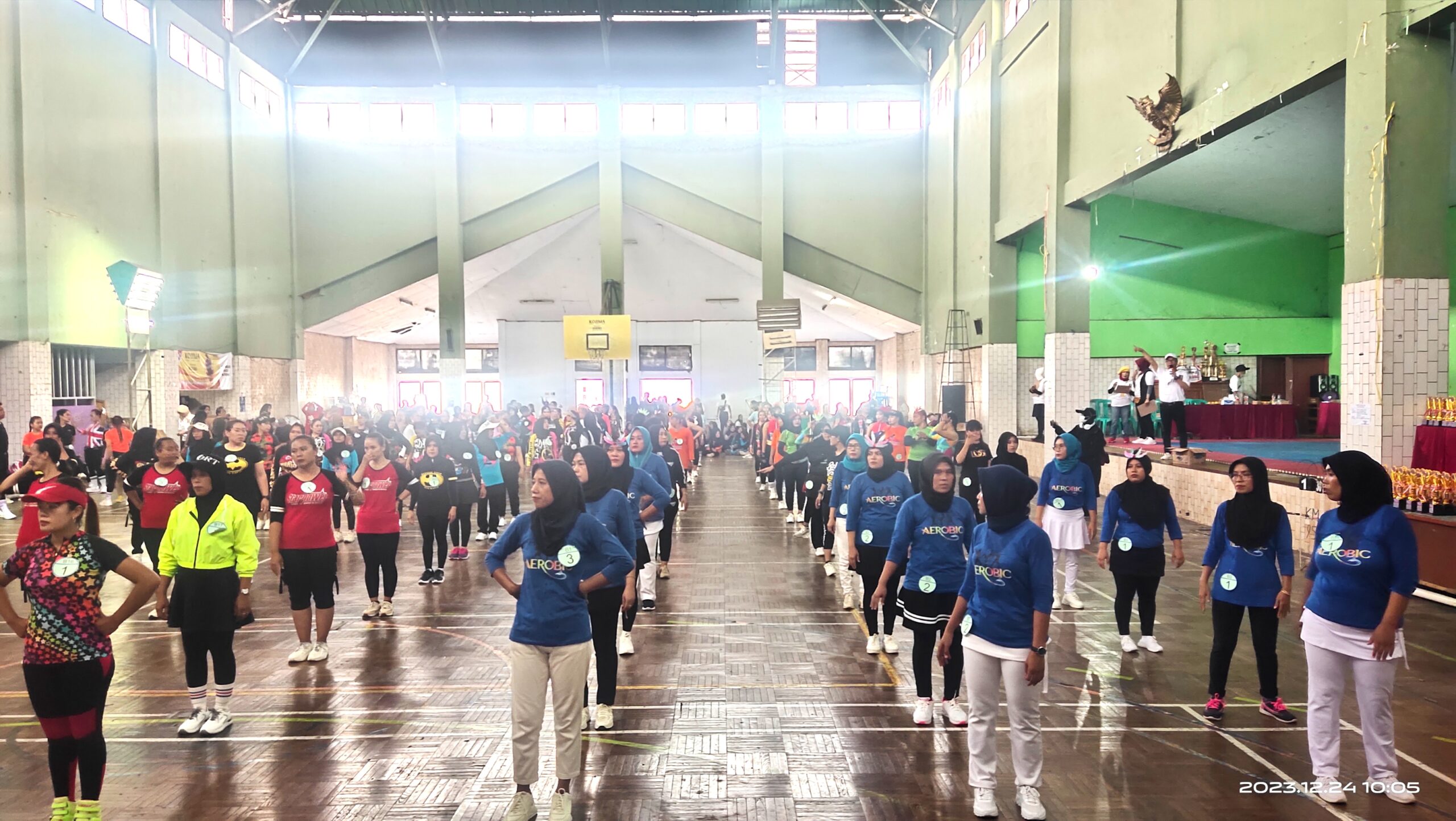 Ketua panitia kegiatan melalui Sekertaris Setyo Ningsih yang lebih akrab dipanggil Neng Ica menyampaikan ” Aerobik Competetion ini digelar dalam rangka memperingati Hari Ibu ke – 95 ”